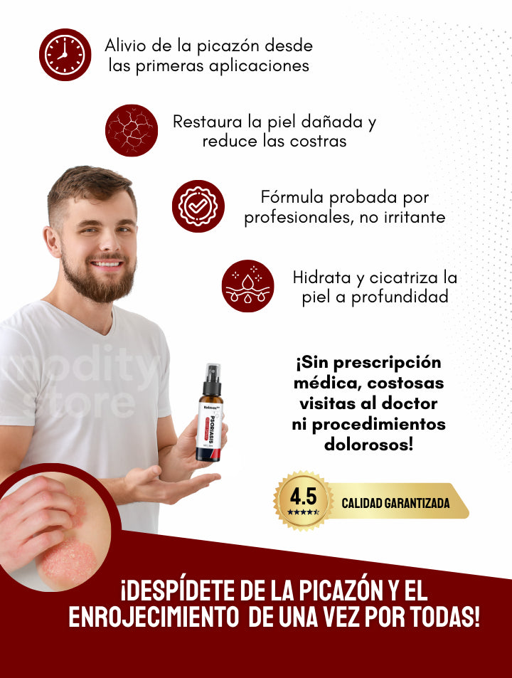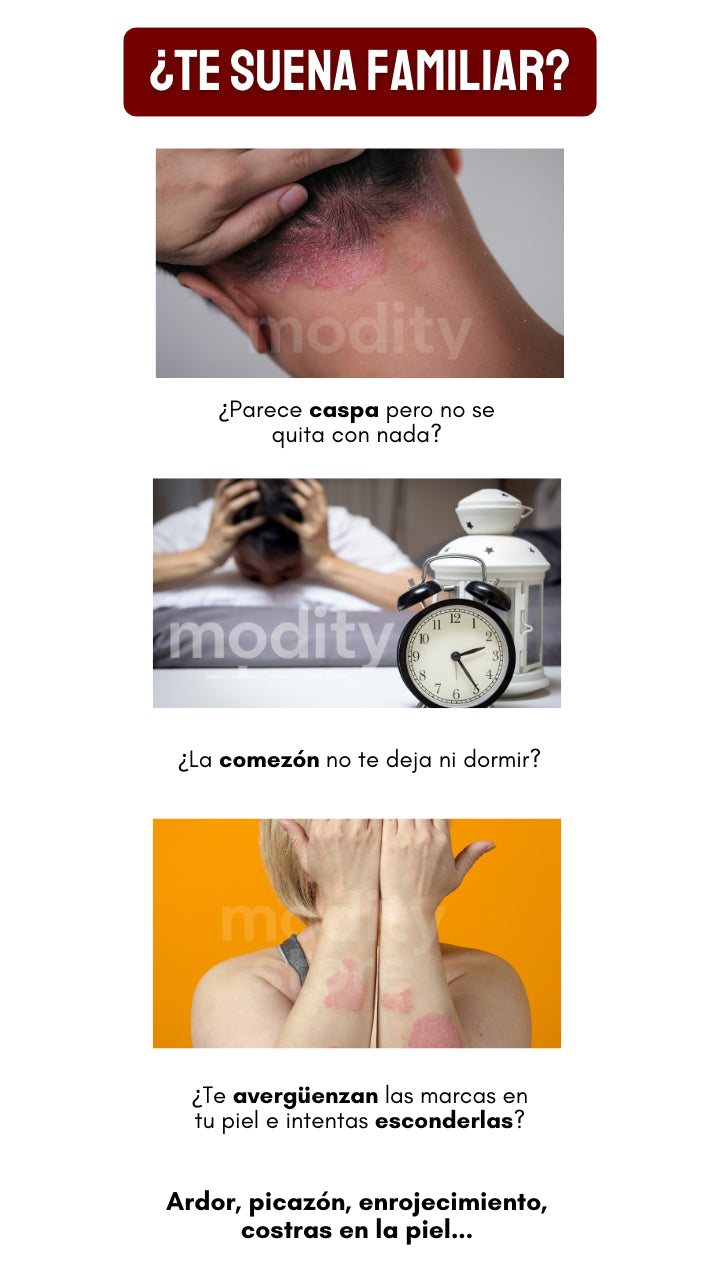 Nuestra fórmula ha sido diseñada para aliviar los síntomas de diversos tipos de psoriasis, incluyendo psoriasis en placas, guttata y del cuero cabelludo. Sus propiedades antiinflamatorias y regeneradoras ayudan a mejorar la piel en cualquier área afectada.